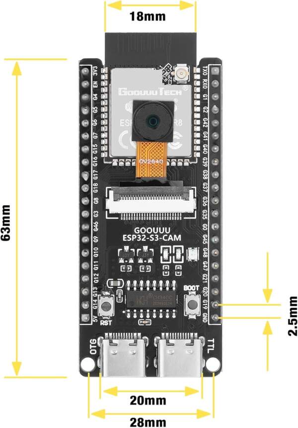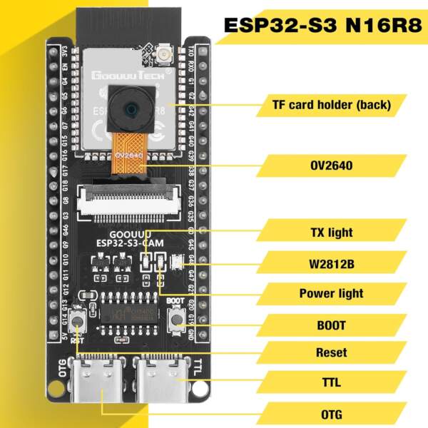 ESP32-S3 CAM 開發板 ESP32-S3-WROOM N16R8 ,附 OV2640 相機模組 送 USB 線