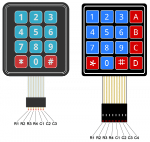 鍵盤上的按鈕按行和列排列。3X4鍵盤有4行3列,4X4鍵盤有4行4列: