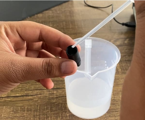 如果蓋子完全充滿 NaOH 溶液,將蓋子擰回探頭時會溢出過多的溶液。如果填充溶液太少,瓶蓋內可能會產生氣泡。總之,最好的方法是填充大約2/3 體積的蓋子。將蓋子擰回探頭時有一點溢出是可以的。