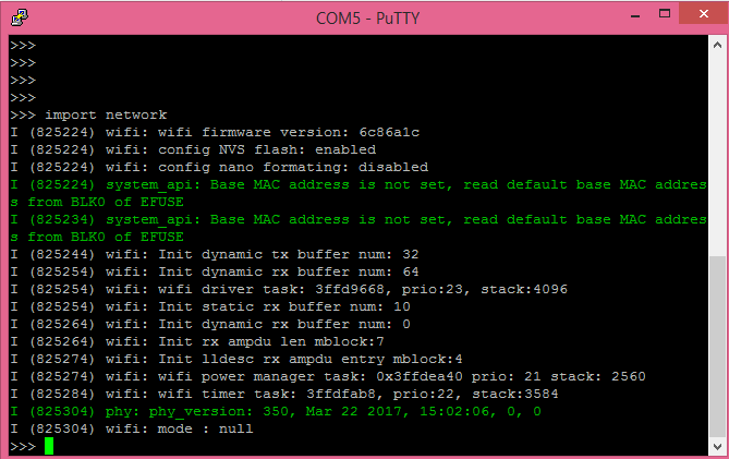 我將使用Putty建立與 Python 提示符的串行連接,但您可以使用其他允許這種連接的軟件。