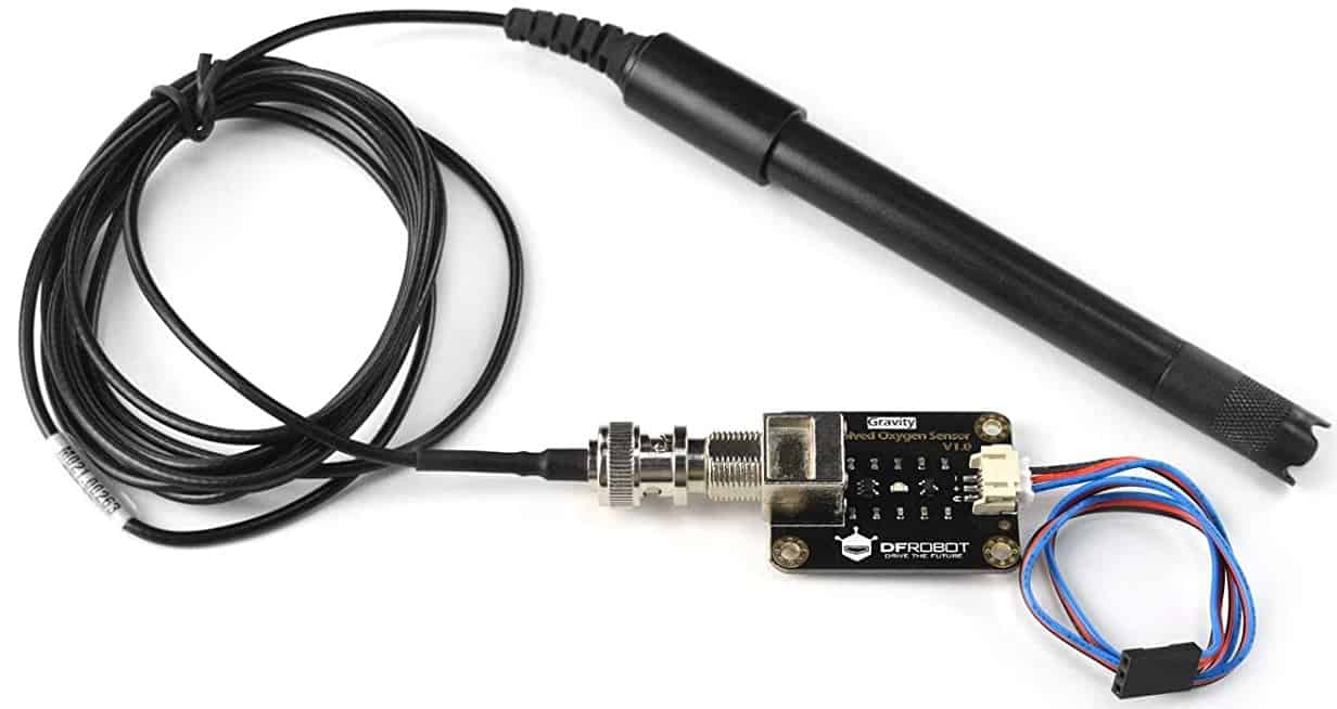 這是 DFRobot 的 Gravity 模擬類比式溶解氧感測儀組 套件,可輕鬆與 Arduino 和任何其他微控制器連接。該傳感器用於測量水中的溶解氧,以便了解水質。廣泛應用於水產養殖、漁業、環境監測、自然科學、實驗室等水質應用領域。