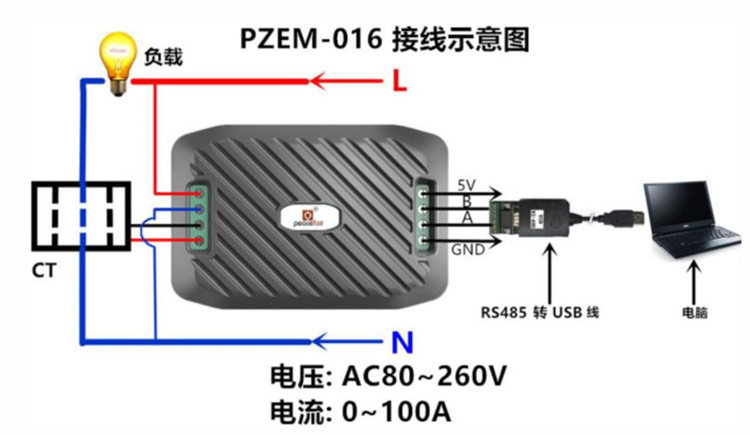 單相交流電智慧電量監控器 監控電壓,電流,電量,功率因數, 100A , 開合式 CT, RS485 ModBus