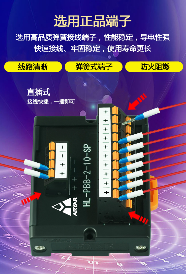 工業電源分線端子台 / 多進多出直插式接線端子排 2進5出彈簧式