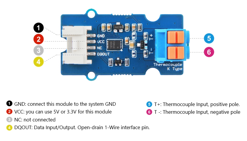 Grove – 1線 MAX31850K 熱電偶放大器 1Wire Thermocouple Amplifier